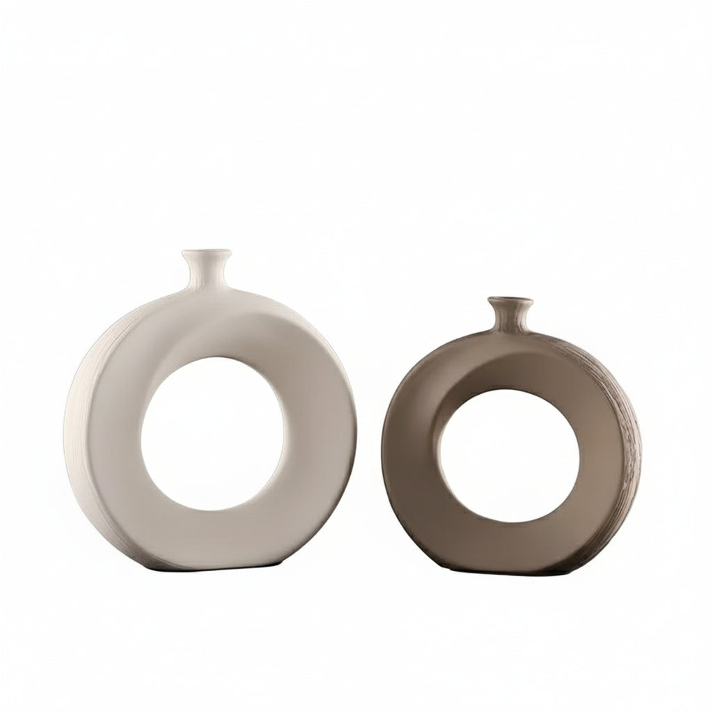 Zestaw Dwóch Okrągłych Dekoracyjnych Wazonów