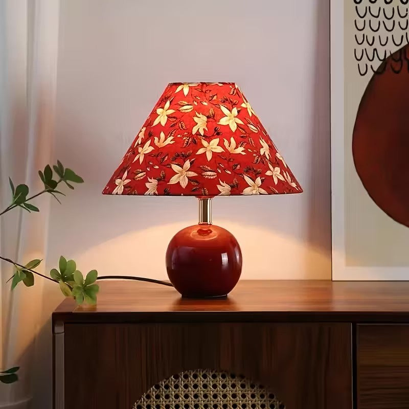 Kulista Lampa Stołowa z Kwiatowym Wzorem