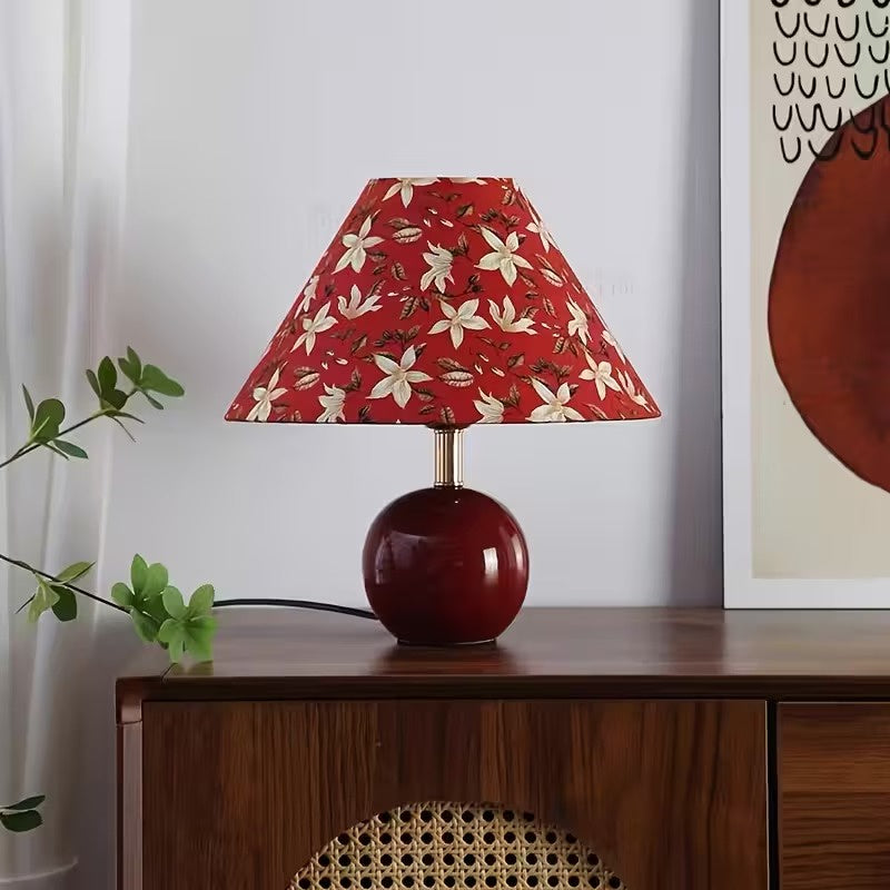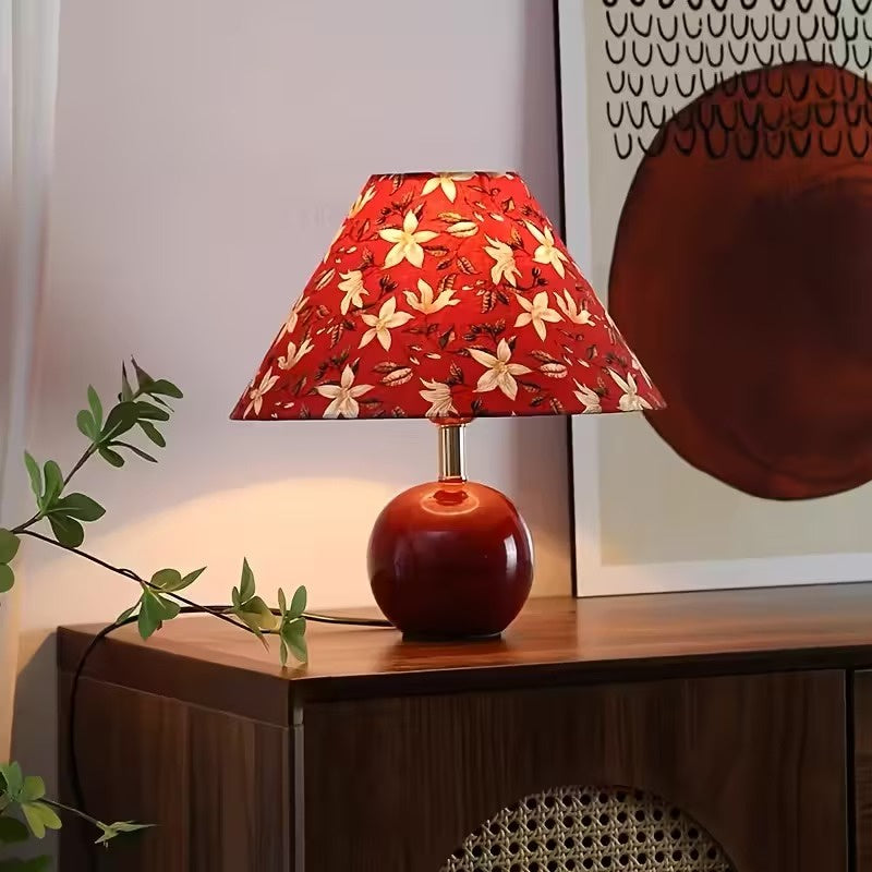 Lampa Stołowa z Stożkowym Kloszem z Wzorem Kwiatowym